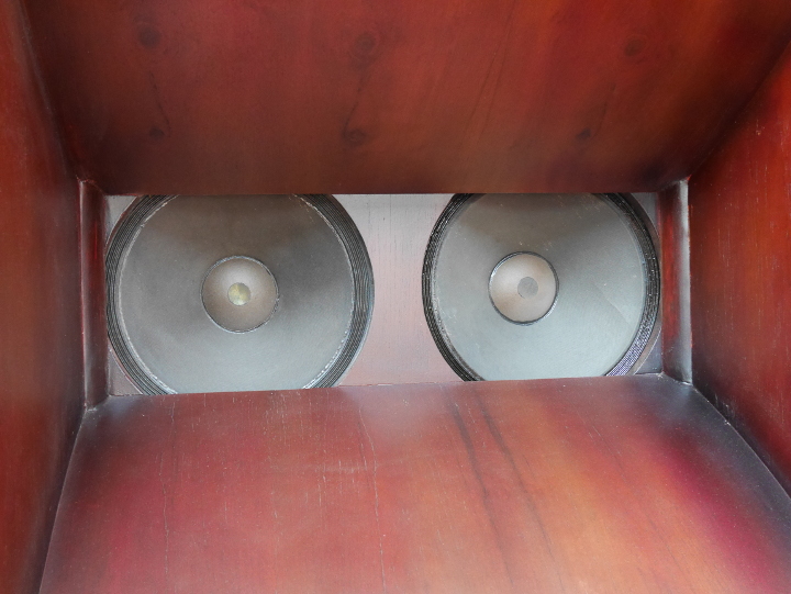 อีกหนึ่งชุดในห้องฟังหลักเพดานสูงวาง Altec A4 ใช้ฮอร์น Altec 203B คอมเพรสชันไดร์เวอร์ 288-8K เติมปลายเสียงแหลมด้วยทวีตเตอร์ ESS AMT-1 ตู้เบสส์ใช้วูฟเฟอร์ Altec 515B ข้างละสองดอก Sidewing กางได้ข้างละบนตามขนาดห้อง ขับด้วยเพาเวอร์แอมป์ Signal Corp. AM-424